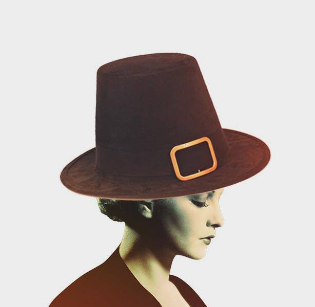 Those in the fashion world know the golden rule of holiday dress-up: your belt buckle must always match your hat buckle and your shoe buckles. Just ask Miss Mayflower 1623, the wearer of this minimalist hat at the very first Thanksgiving.